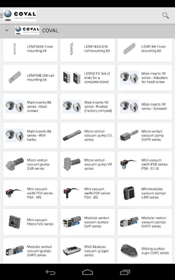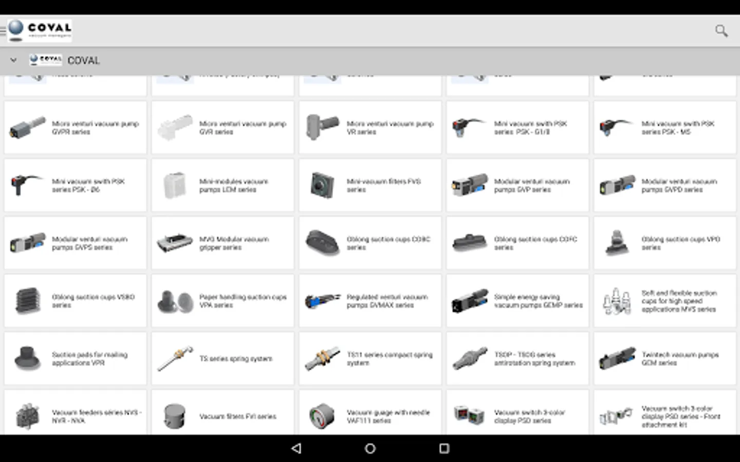 Discover COVAL products for vacuum handling : Suction cups, suction plates, ejectors, vacuum pumps, vacuum generators, vacuum switches, vacuum grippers, Spring systems, extensions, fittings, nozzle fittings, automatic shut-off valves, non-return valves.