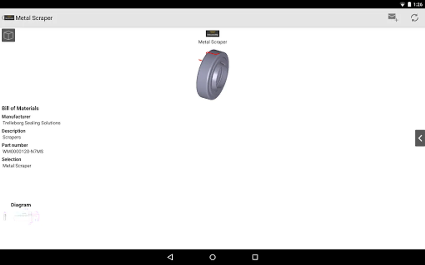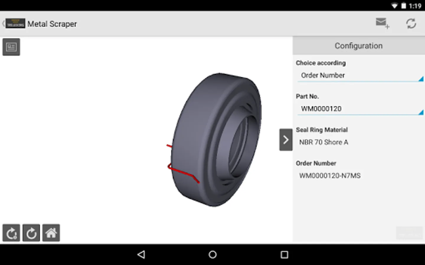 This App allows you to view a 3D model of the selected part, select the appropriate part number and material, and then send it directly to an email address in a variety of file formats.