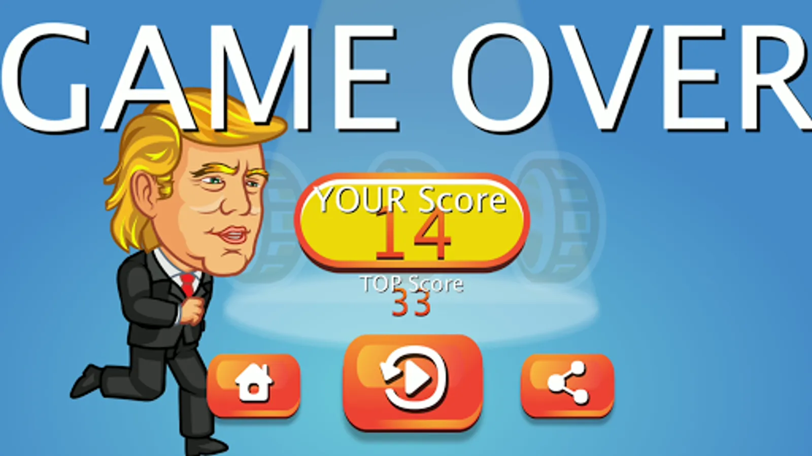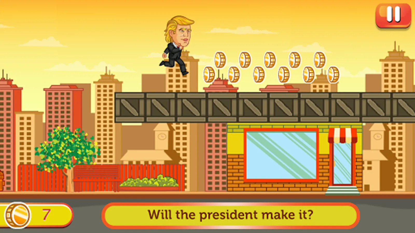 This is a silly Trump jump video game, simply tap and jump. Let’s see how far Mr. President can go!