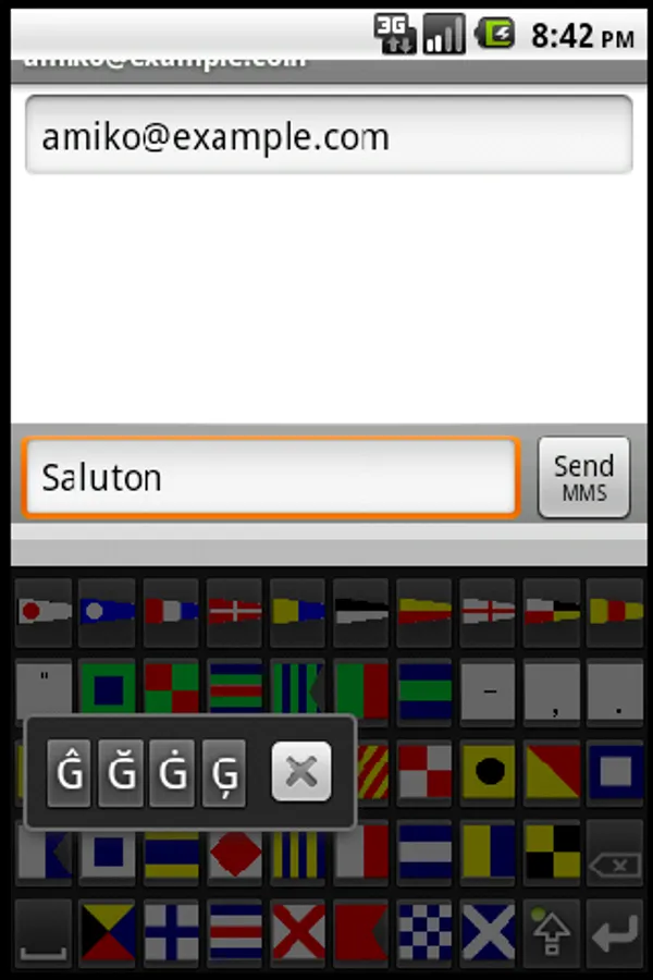 After install, go to Android settings, go to Language and input, then checkbox the Maritime Flag Keyboard (FlagKlavaro) as one of your active keyboards (set it as default if you're feeling brave, or later just use Choose input method from the Android notification bar).