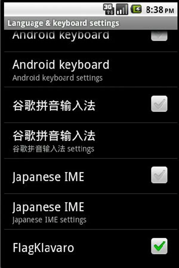Based on the Google sample keyboard with thanks. Your privacy is respected, no internet connect required. Please do not rely on FlagKlavaro, always keep your default keyboards installed as well.