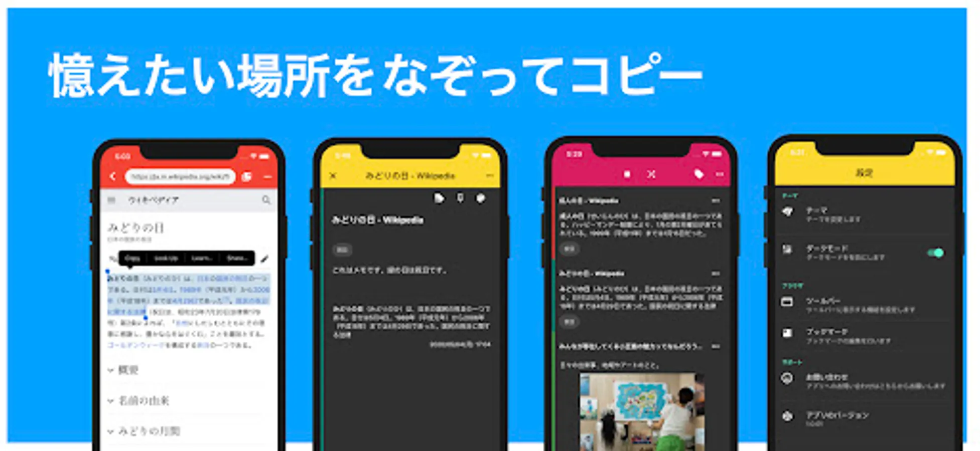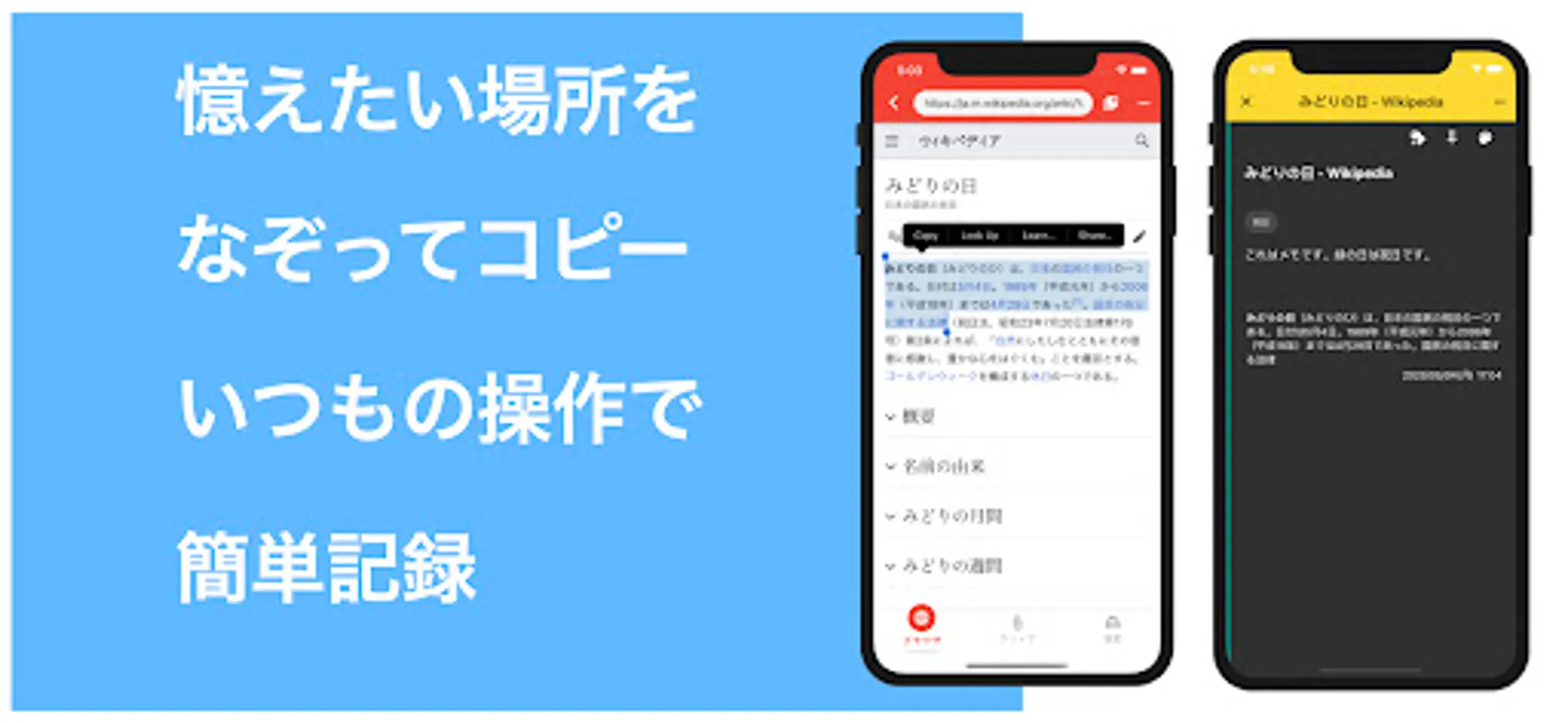 When you perform the "copy" operation of the OS you are familiar with, the selected text is automatically recorded, and you can easily memorize it later by classifying it by tag / color coding.