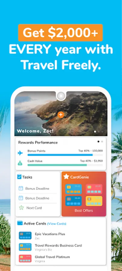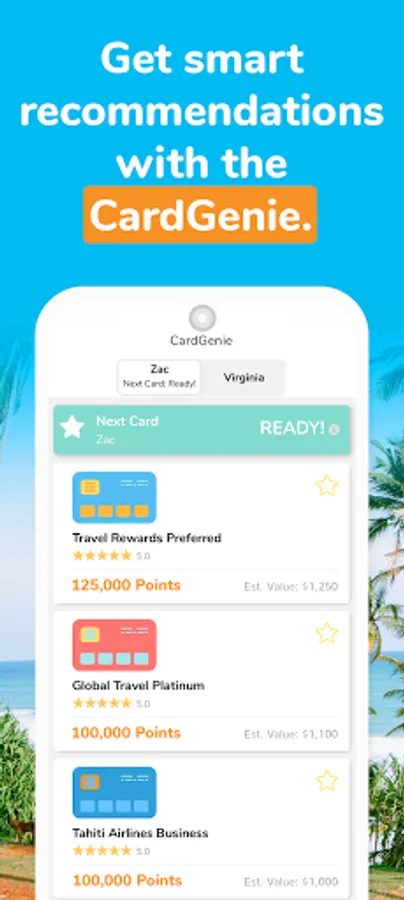 Try the most popular free travel app and our rewards credit card tracker for Android. Make free travel a part of your life and track your points and miles earned for your favorite airline and hotel. Our CardGenie offers personalized recommendations and shows the best offers available.