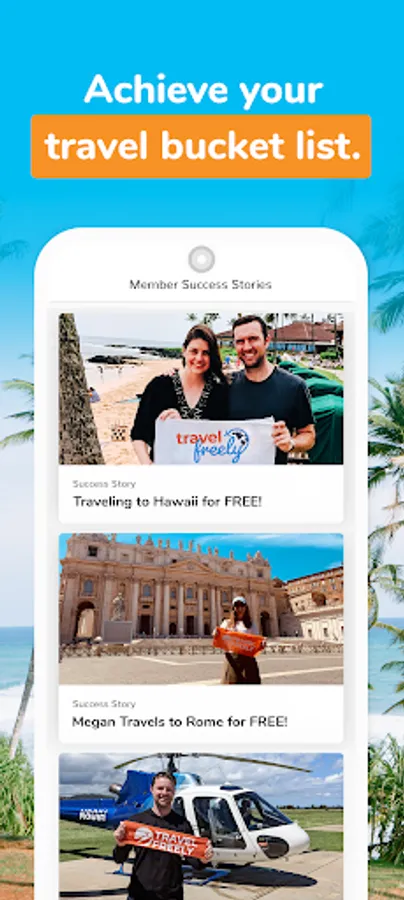 Accomplish your travel bucket list! Travel Freely is the amazingly simple app that boosts your travel budget like never before. Forget travel deals. Get free travel. =)