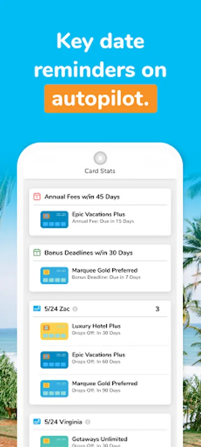 A user-friendly organizing system to set personal travel goals, keep track of your specific cards and points earned, and monitor your credit score.