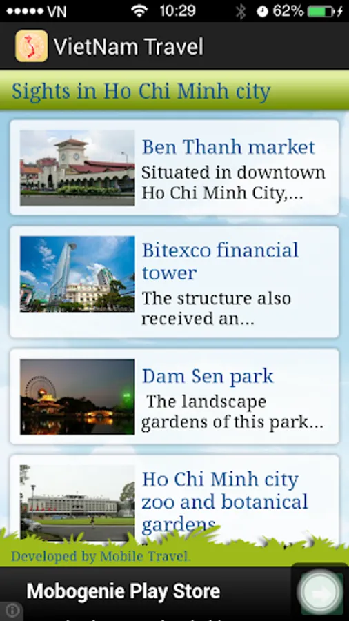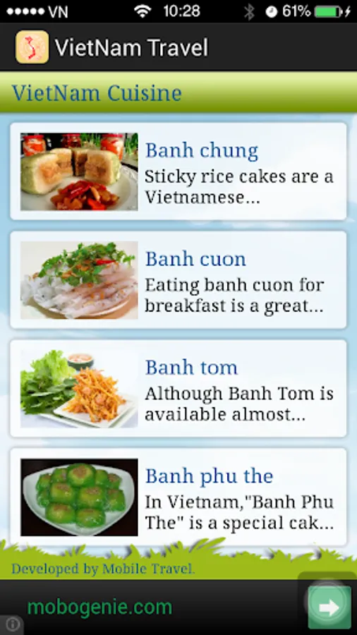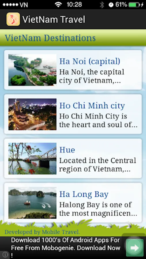 VietNam Travel is a application introduce the most beautiful places in VietNam(Ha Noi capital, Ho Chi Minh, Da Nang,...). It also tells when and where tradition festival and events show.