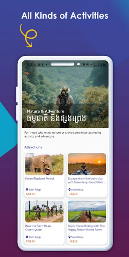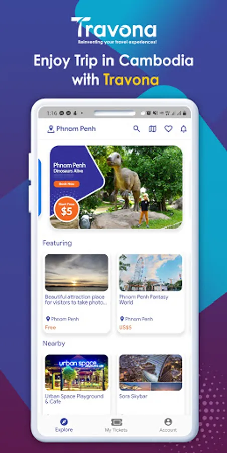 Download Travona now. We have partnered with more than 150 places in 5 different cities in Cambodia to bring you one the most extensive collections of attractions and experiences for all types of travelers.
