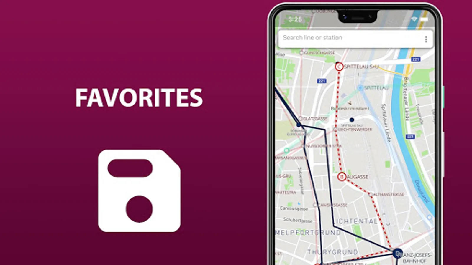 Search by station name or route number, saving chosen routes and geo-positioning are available in the basic version.