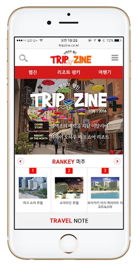 트립진에서는 매호 자사만의 색깔 있는 테마여행을 추천하며 각 나라별 인기 여행지를 다룹니다. 또한 전 세계 주요 리조트와 호텔에 관한 소개와 방문자들의 페이지뷰, 좋아요, 성별, 연령별 이용비율과 설문을 바탕으로 공정한 시각에서 바라보는 순위도 공개하는 등 이제껏 독자들이 갈증을 느껴왔던 여행정보들을 전하고자 합니다.