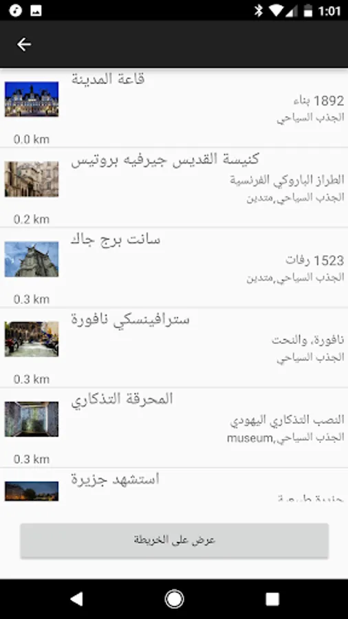 * Nearby hotels, attractions finder and list by distance