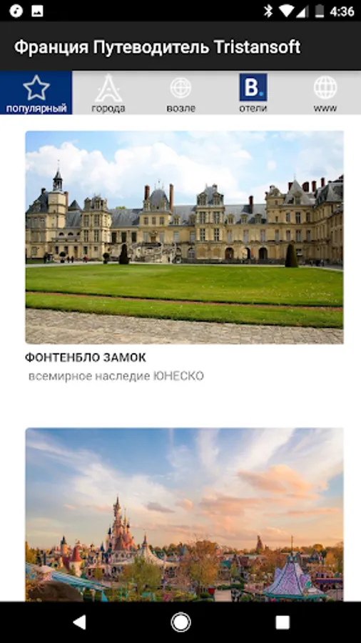 The guide has a complete and modern city guides: Paris, Nice, Lyon, Marseille, Versailles, Manche, Strasbourg, Bordeaux, Bayeux, Avignon, Toulouse, Carcassonne, Reims, Cannes, Lille, Chamonix, Antibes, Nantes, La Rochelle, Aix-en-Provence, Montpellier, Annecy, Arles, Rouen, Saint-Malo, Bon, Colmar, Nimes, Honfleur, Biarritz, Nancy, Porto-Vecchio, Dijon, Caen, Amiens, Lourdes, Clermont-Ferrand, Angers, Metz, Albi, Saint-Tropez, Sarlat-la-Caneda, Mulhouse, Tours, Toulon, Grenoble, Ajaccio, Besancon, Cap d'Agde, Rennes, Menton, Brest, Narbonne, Hyeres, Le Havre, Limoges, Saint-Remi- de- Provence, Saint-Raphael and Saint Perpignan t-Maxime.