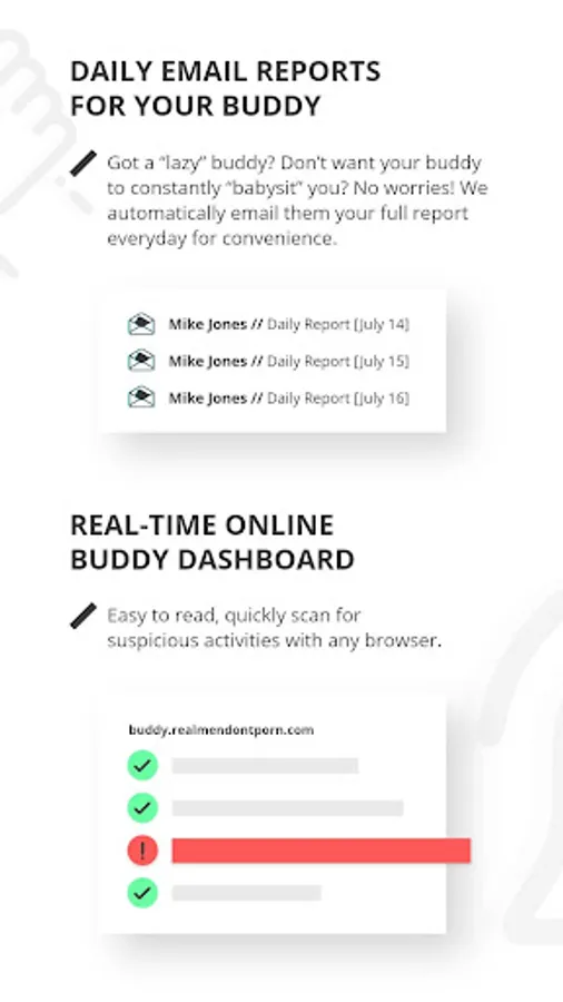 *RealMenDontPorn ends secrecy by reporting your device activities, even in incognito, to your trusted buddy.