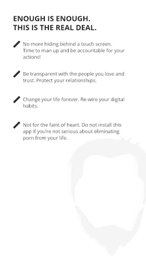 RealMenDontPorn is an accountability app made for the modern man who lives in the digital age and understands deep down that porn use will hurt themselves and those around them whom they love dearly.