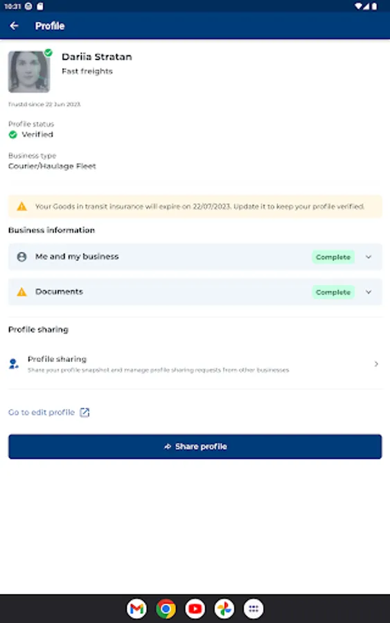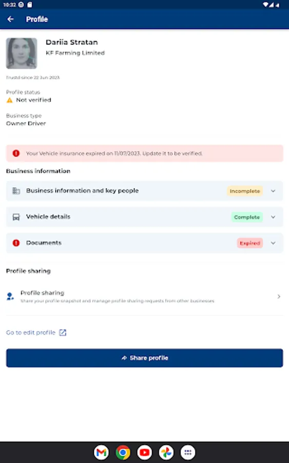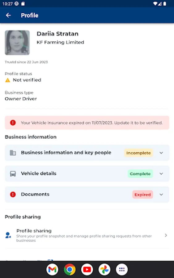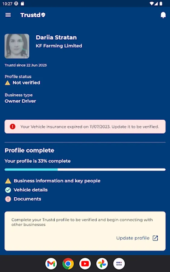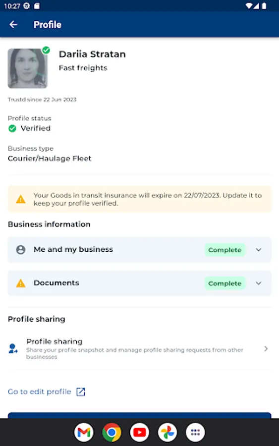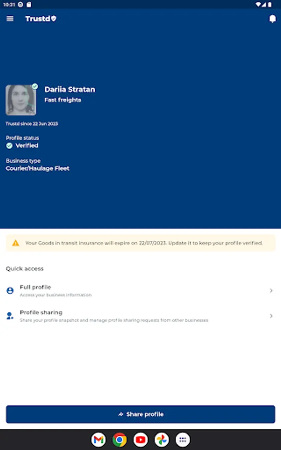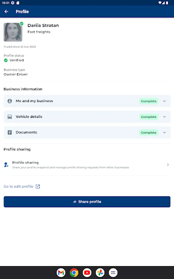 Trustd is revolutionising transport & logistics by giving control back to the carriers. Take control of your business and your data with Trustd – your digital business identity and professional passport. Create your Trustd profile and become ‘Verified by Trustd’ - showcase your credentials and elevate your business above the competition.