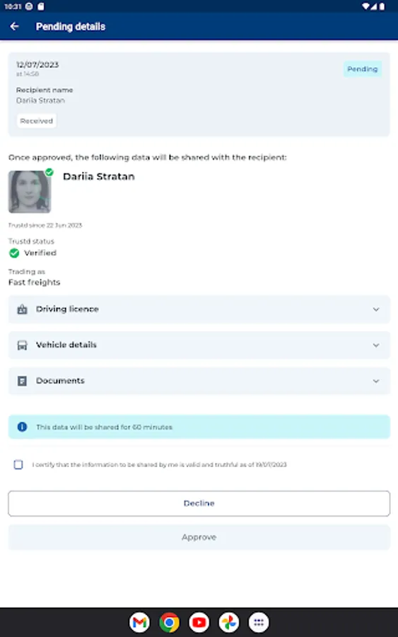 Trustd caters for all types of business operation – owner drivers, courier & haulage fleets, freight forwarders and 3PLs. Build your “Trust network” by connecting and verifying the business credentials of entities you trade with and using in-app real-time authentication, you can manage the risk across your Trust network at all times.