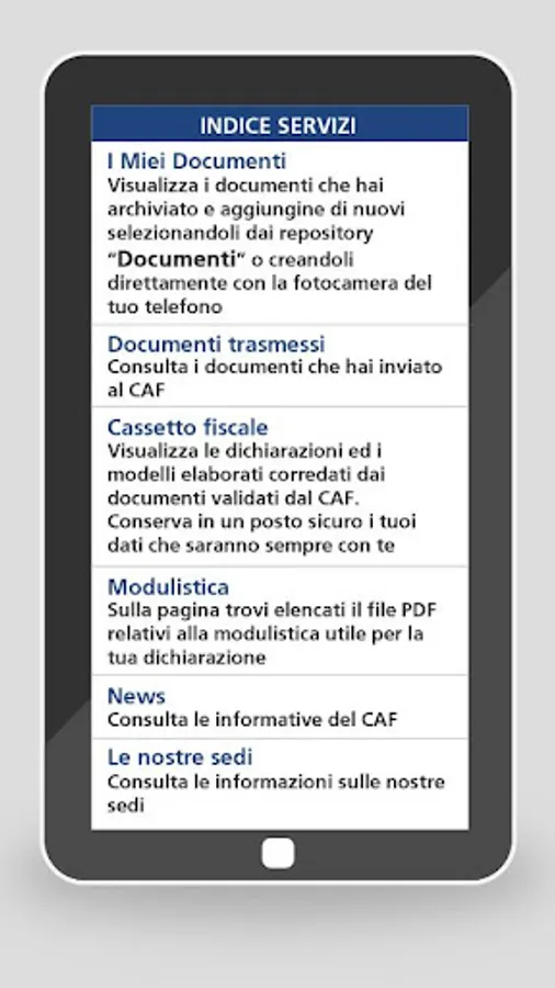 To access all APP services from information, to sending documents, to storing documents, to the fiscal drawer and to downloading documents