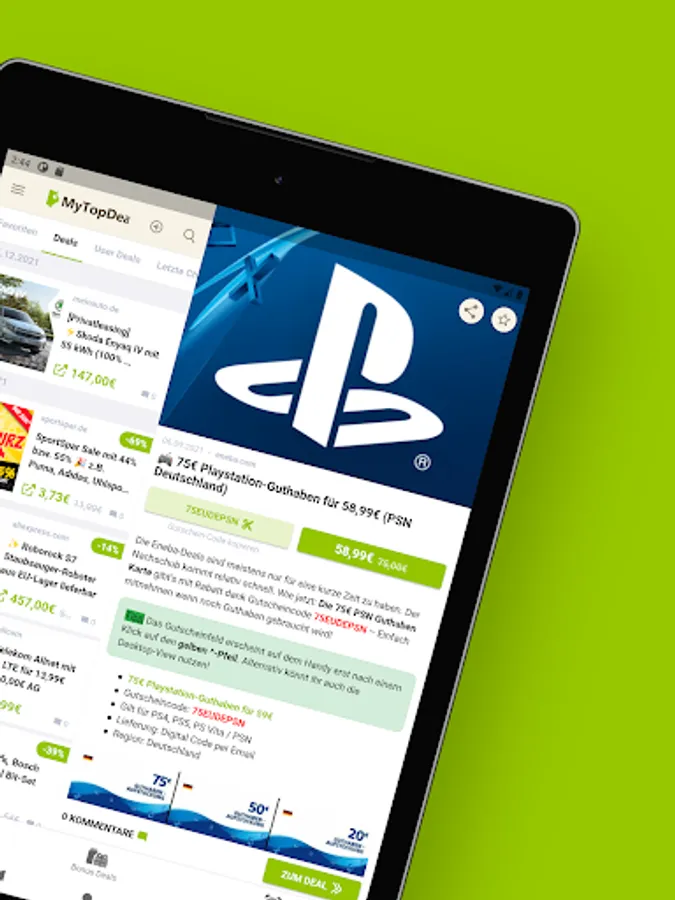 Never miss the latest bargains, deals, vouchers and free items - and become part of an ever-growing community! 💚 Thanks to the free MyTopDeals app, you get the best offers every day via push message directly to your smartphone or tablet. This makes saving even more fun.