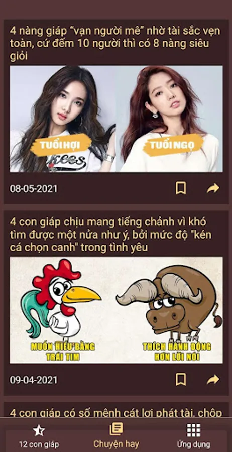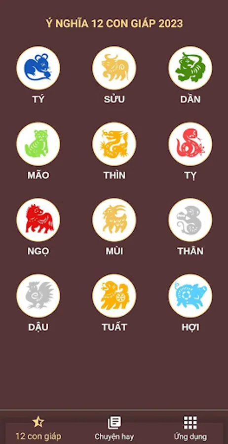The 12 animals are 12 animals that are very familiar and close in life such as: Rat (rat), Ox (buffalo), Dan (tiger), Mao (cat), Thin (dragon), Snake (snake). Horse (horse), Mui (goat), Than (monkey), Rooster (chicken), Tuat (dog), Pig (pig/pig). Each animal represents a year of age, and people born in any year often have their own characteristics of personality, destiny ... characteristic of that year.