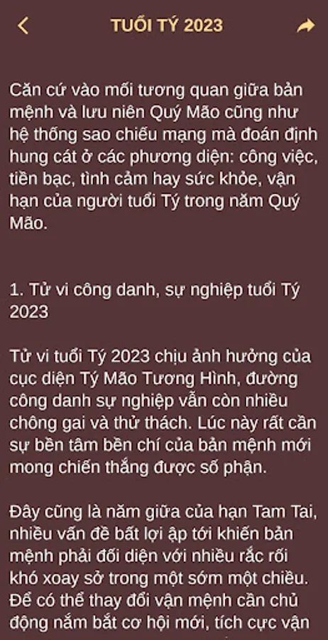 This application makes predictions about health, career, love, things to do, things to avoid by age (can - chi) in 2023 of each person according to experience and folk beliefs. You can also refer to how to calculate stars, how to see off bad stars, welcome good stars or refer to how to calculate good dates for important things such as funerals, weddings, house construction, grand openings... However The book is for reference only because each person has their own characteristics, circumstances, and different living and working environments.