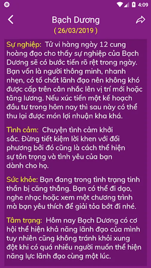 And many good articles about astrology, zodiac, psychological tests ... all on the zodiac application every day.