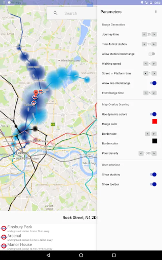• Enter the postcode of your selected rent (or tap the map) and see what you can reach within reasonable time.