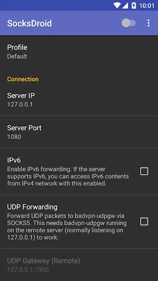 SocksDroid is an app for connecting to SOCKS5 servers (a type of VPN). We don't run a public VPN service ourselves, instead, we give you the app and you bring your own VPN server. We use Android's VpnService to route traffic from your applications to the server that you specify.