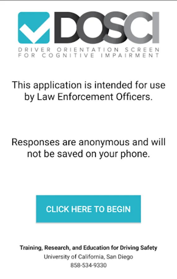 The Driver Orientation Screen for Cognitive Impairment (DOSCI) is a tool for use by law enforcement when encountering drivers who are confused or slow to answer questions. Nine simple questions will assess an individual’s orientation to person, place and time. Results of the screen can provide objective information when completing re-examination forms for the DMV. The DOSCI is intended for use by Law Enforcement and requires a password from their agency or from TREDS.