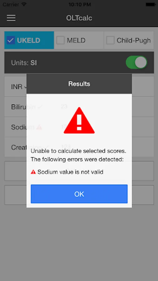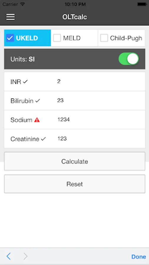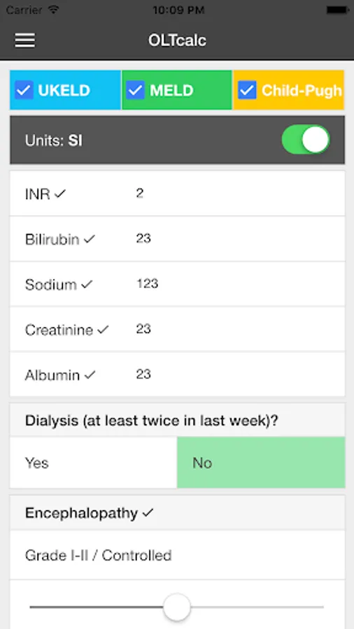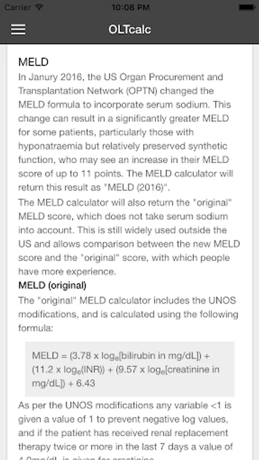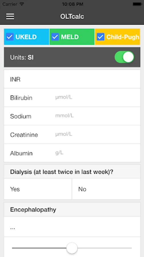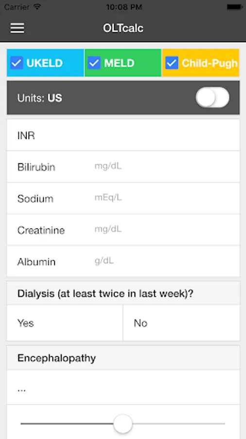 The latest version includes the updated MELD score and the ability to select SI or US units.