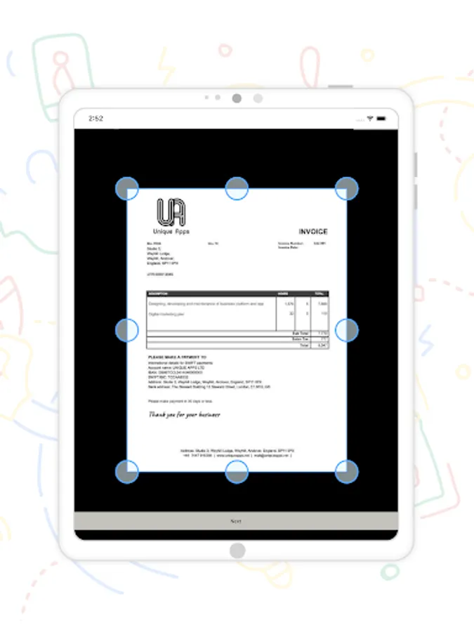 GDRV app allows you to scan directly and store in PDF format to your own G Drive account. Simply install the app and add your G drive account details and you can start scanning.
