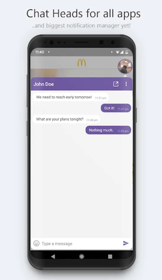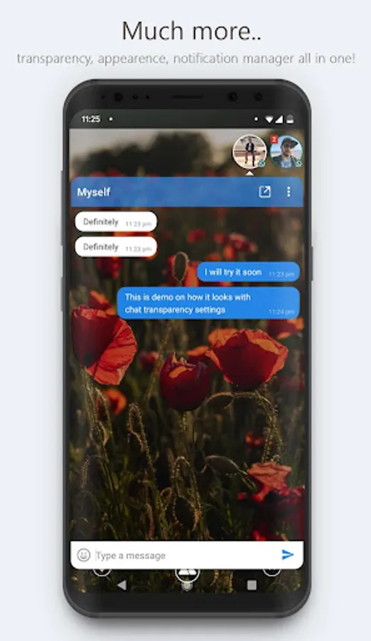 DirectChat allows you to create ChatHeads/Chat Bubbles for any application. It manages all your conversation in one place to help you to have a non interrupted conversation. You can also read and reply to all messages privately without ever coming online or showing your last seen. It comes with more than 20 messengers support by default. Additionally, it acts as your own Notification Manager to manage all your notifications in one place. Additionally, You can also customize the chat appearance to suit your needs with different colors and transparency.