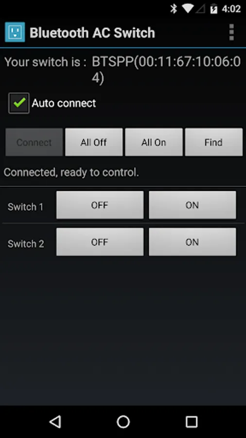 Control Bluetooth power switch from your mobile phone. This APP is designed to work with designed hardware