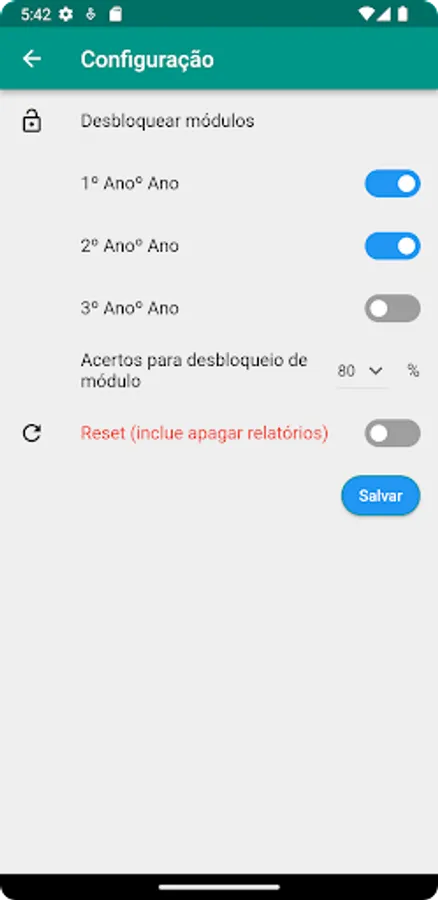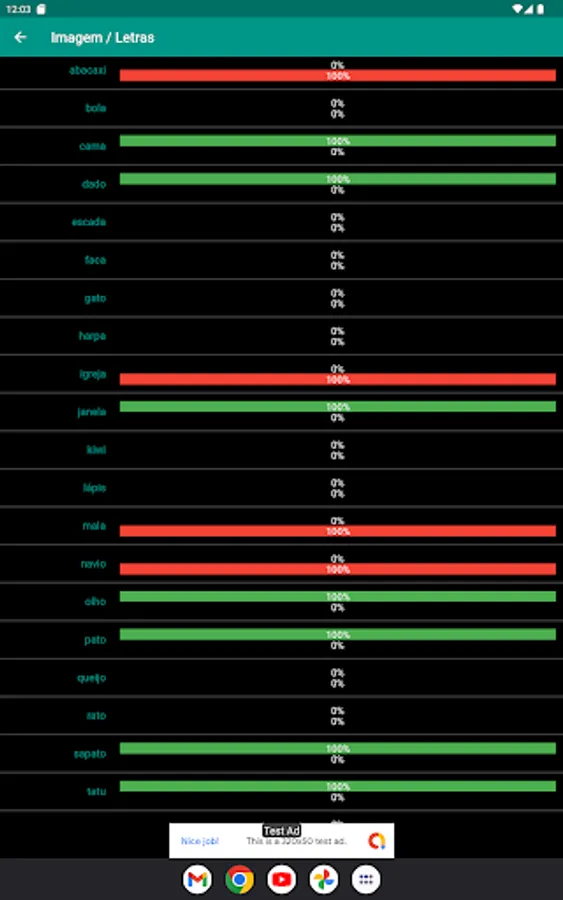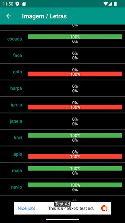 The user can check the percentage of errors and correct answers for each Test in the Reports Section in the Menu.