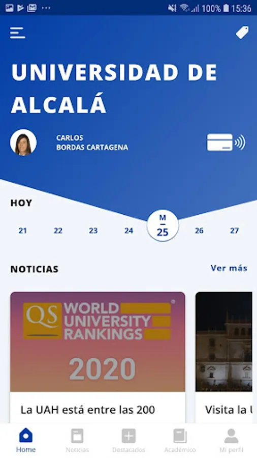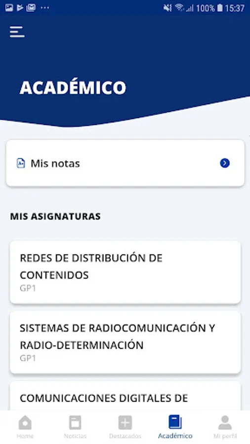 • Private profile: All your personalized data according to your university profile. Check your subjects, grades, etc. And also your digital university card. You will always take her with you!
