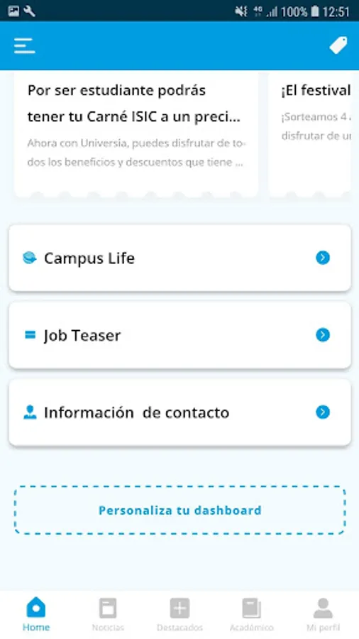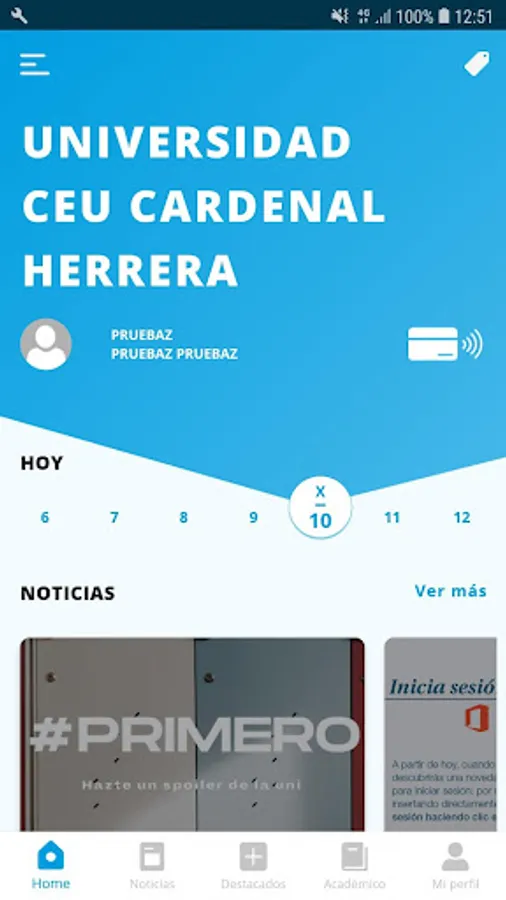 • Private profile: All your personalized data according to your university profile. Check your subjects, grades, etc. And also your digital university card. You will always take her with you!