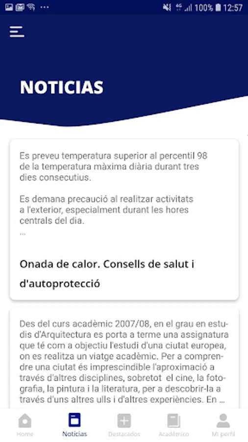 Official application of the University of Girona where you will find two profiles: the public, with the academic offer, news, etc. and the private profile, with personalized contents according to whether you are a member of the student collective, PDI or PAS.