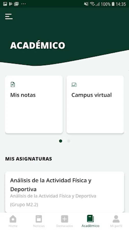 • Private profile: All your personalized data according to your university profile. Check your subjects, grades, etc. And also your digital university card. You will always take her with you!