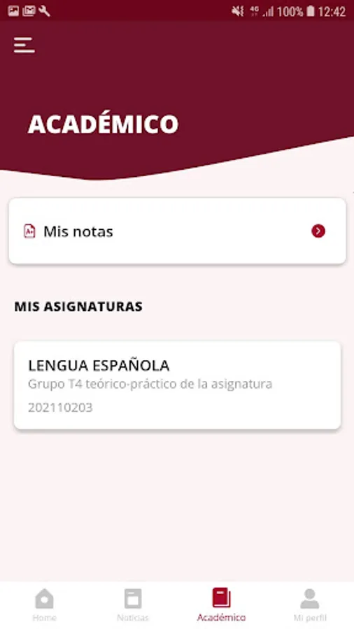 • Private profile: All your personalized data according to your university profile. Check your subjects, grades, etc. And also your digital university card. You will always take her with you!