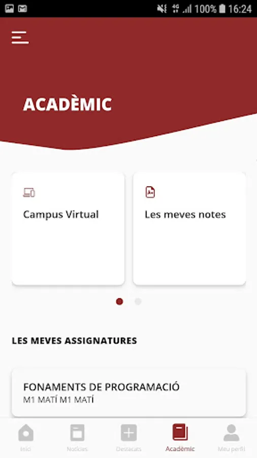 • Private profile: all your personalized data according to your university profile. Check your subjects, grades, etc. And also your digital university card. You will always carry it on!