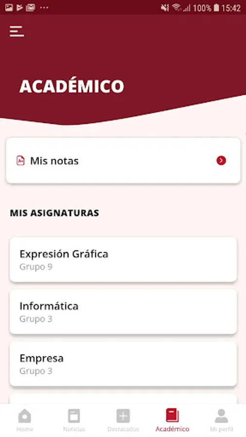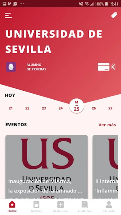 • Private profile: all your personalized data according to your university profile. Check your subjects, grades, etc. And also your digital university card. You will always take her with you!