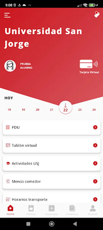 • Private profile: All your personalized data according to your university profile. Check your subjects, grades, etc. And also your digital university card. You will always take her with you!