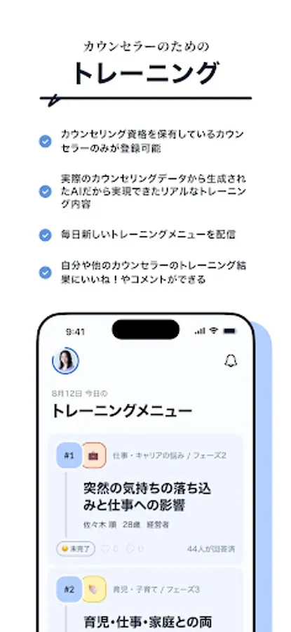 Since the content of the consultation is created by AI, you can gain experience while communicating with the counselors regarding the training results.