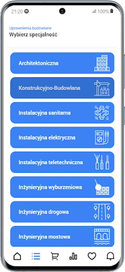 It doesn't matter if you are a bridge builder, architect, installer or constructor. For each scope and type of construction licenses that exist in Poland in accordance with the Construction Law, you will find a unique database of questions and answers for a given specialty collected over the years from district qualification commissions in Poland.