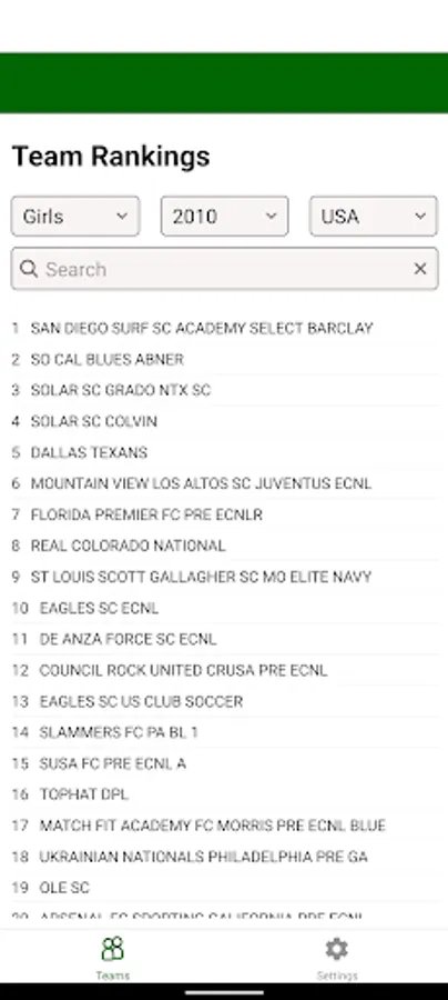 With the most teams, the most results and the most accurate rankings, this is the #1 stop for parents, players, fans, coaches, club managers, and recruiters. See rankings, results and game predictions for all youth soccer teams in the USA.