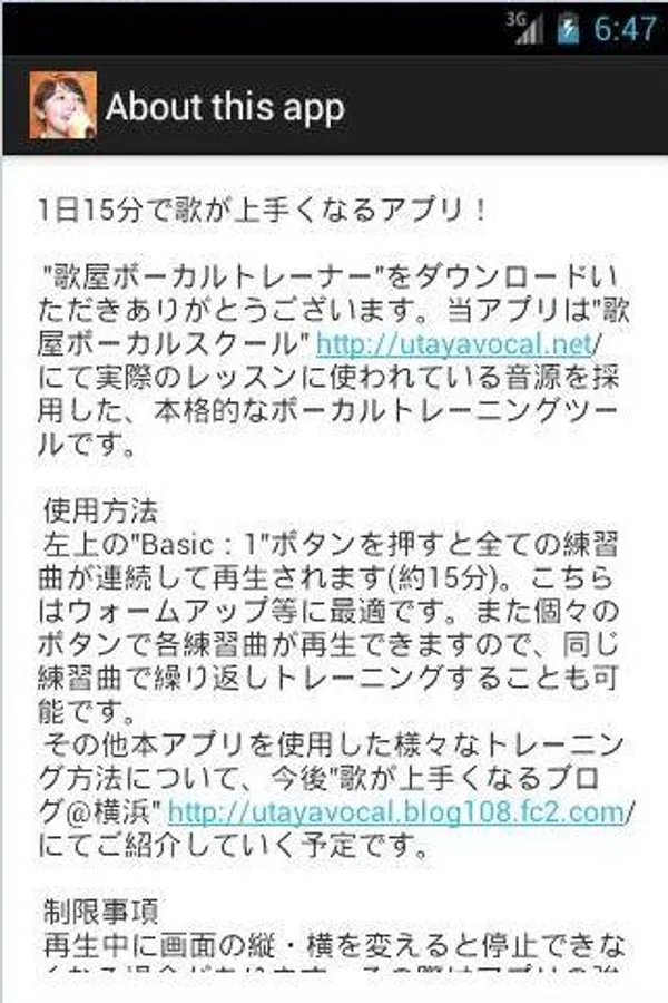 "Uta-ya vocal trainer" is "Uta-ya vocal school" was adopted sound source that is used in the actual lessons at http://utayavocal.net/, it is a full-fledged vocal training tool.