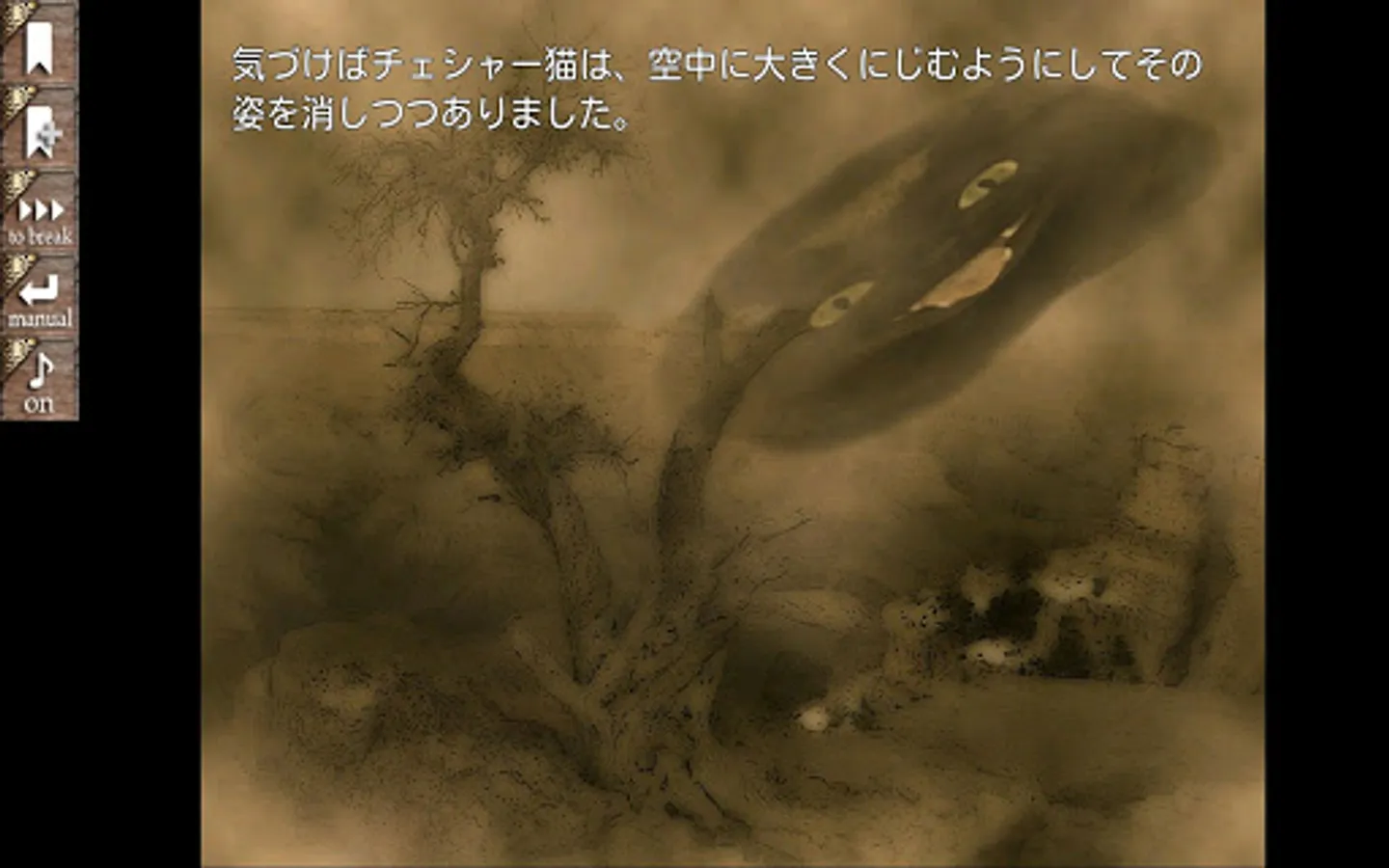 Thus Alice will head to the adventure of looking for a friend to the world a sepia wrapped in fog.