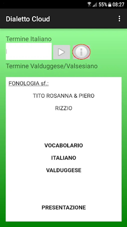 Vocabulary easy mobile version of Italian - dialect Valduggese / Valesiano / Piemontese written by Tito, Rosanna and Piero Rizzio over a period of more than 10 years.