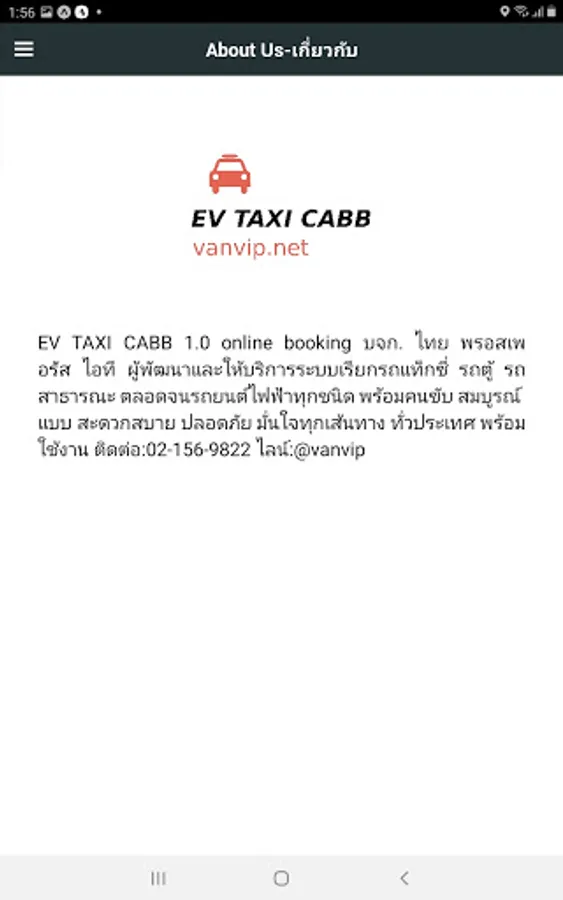 EV TAXI Caller app by Thai Prosperous IT Co.,Ltd. No. 119/908 Moo 1 Perfect Place Rattanathibet Rattanathibet Road, Sai Ma Subdistrict, Mueang Nonthaburi District, 11000 Telephone 02-156-9822