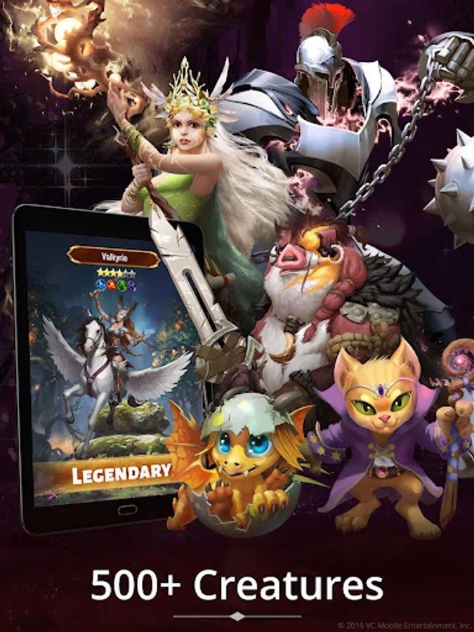You’ll start off with a team of 5 Creatures as you adventure and engage in turn-based RPG battles with hundreds of other Creatures to grow your collection and create stronger teams according to your strategy. Discover treasure, gems, and tokens to evolve your Creatures and to Summon the best new Creatures. Upgrade and Evolve your Creatures to unlock more powerful magic spells, mighty sword swings, and Creature abilities. Chat with Guild friends and earn unique PvP rewards from your Guild.