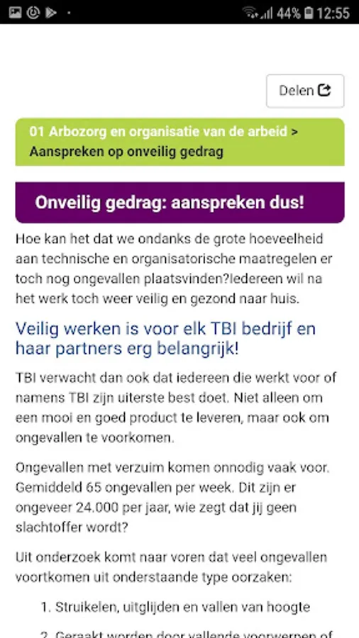 Furthermore, all TBI staff safety directive in the app the TBI, the latest news, the "learning cards" and read the toolboxes.