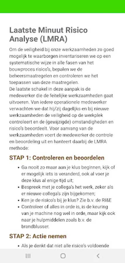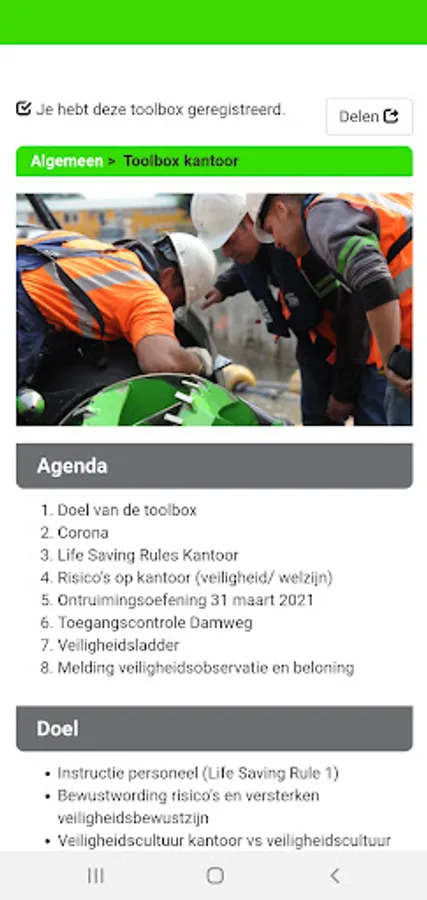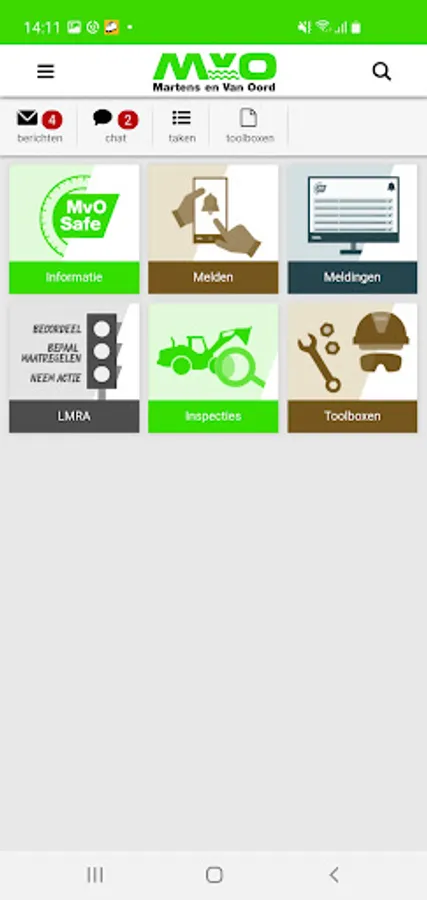 In addition, anyone who works together with MvO can read the safety guidelines, the latest news, the toolboxes and carry out inspections in the app.